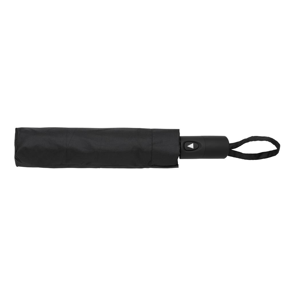 No greenwashing, but telling a true story about sustainability! This Impact umbrella is made with 190T RPET pongee with AWARE™ tracer. With AWARE™, the use of genuine recycled fabric materials and water reduction impact claims are guaranteed, by using the AWARE disruptive physical tracer and blockchain technology. Save water and use genuine recycled fabrics. With the focus on water 2% of proceeds of each Impact product sold will be donated to Water.org. Stay fashionable and dry with this 3 section auto open umbrella that opens at the touch of a button and features a compact design that fits perfectly in a purse or tote. Metal frame, fiberglass ribs with ABS handle. Stormproof. This umbrella canopy has saved 4.6 liter of water and is made with 7.7 PET bottles (500ml). Water savings are based on figures when compared to conventional fiber. This calculated indication is based on reliable LCA data as published by Textile Exchange in their Material Snapshots 2016.
