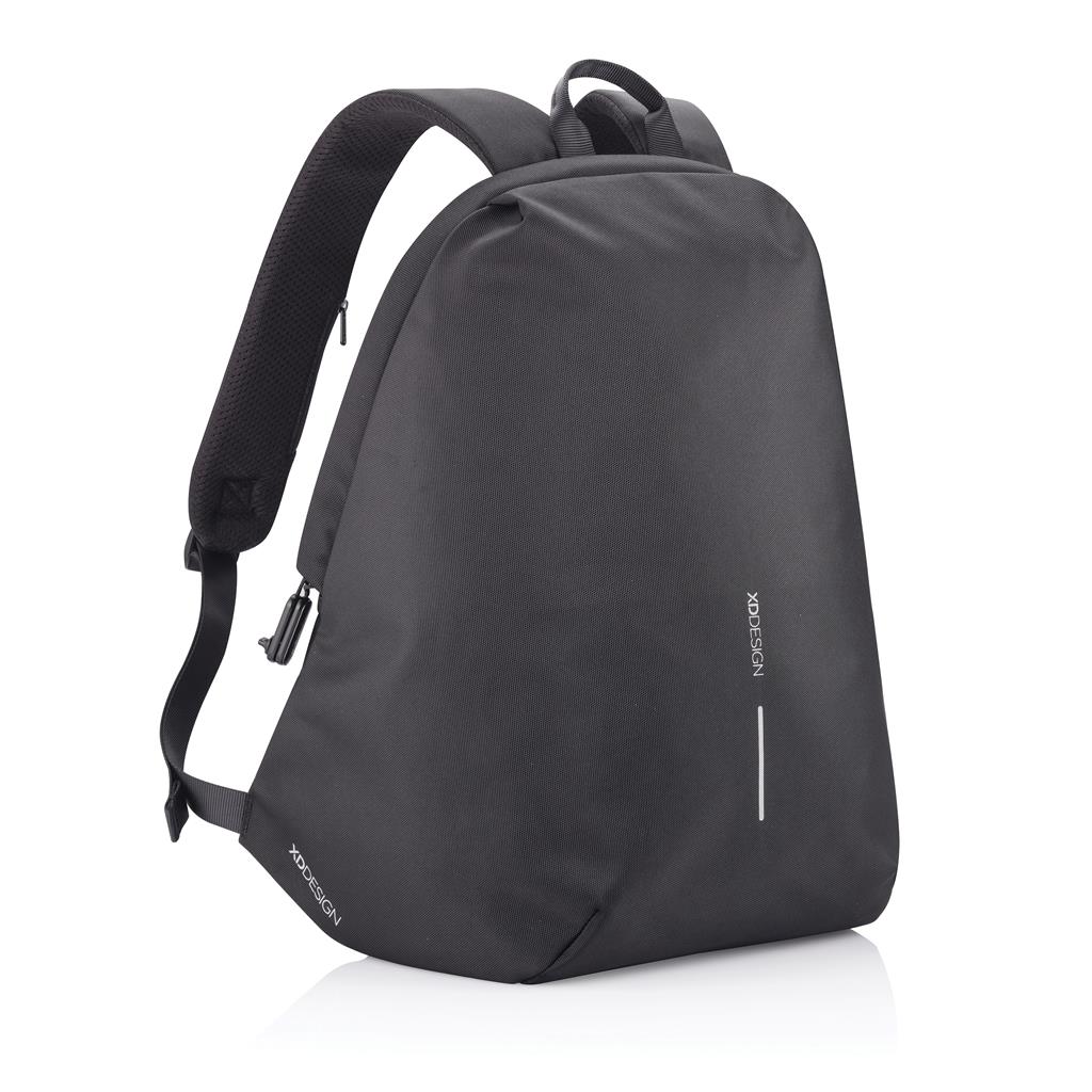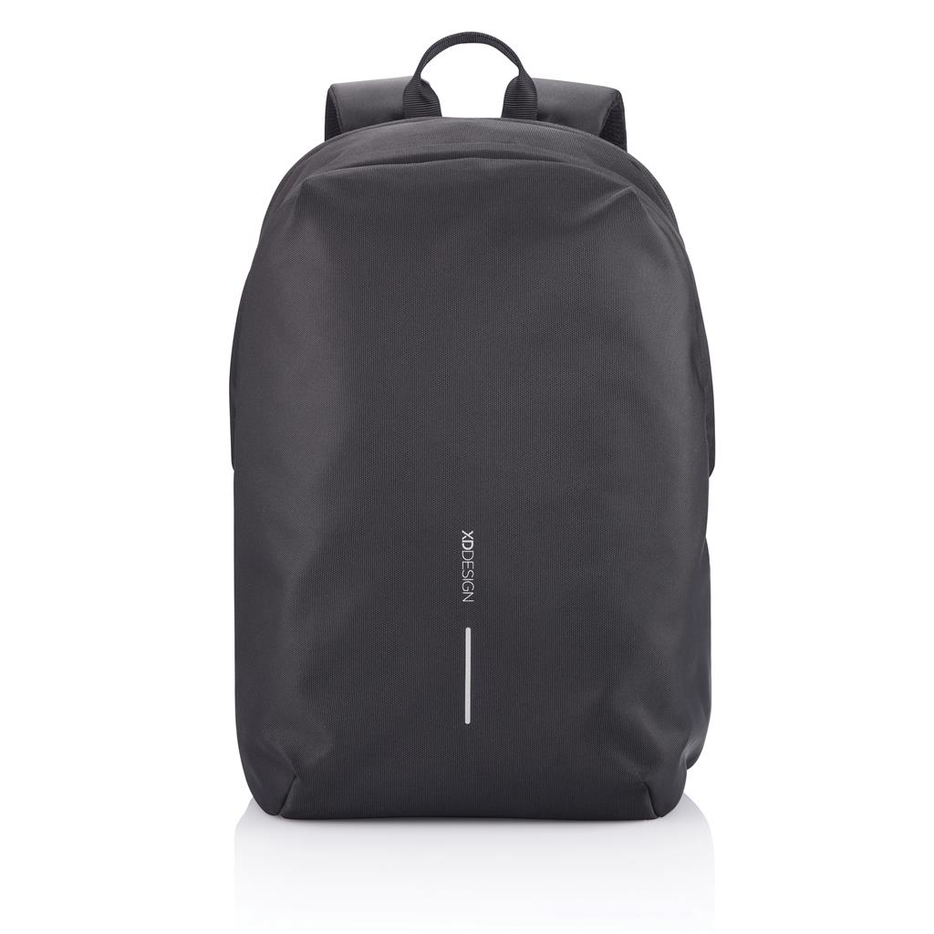 For university, school, work, or your next trip, the Bobby Soft Backpack is ready! The iconic Bobby anti-theft design with hidden RFID-protected pockets, no front access, and hidden zippers is now complemented with a twist-lock zipper puller. In the main compartment, you can easily organize your gear with a padded 15.6″ laptop compartment, notebook pocket, smart pockets, and a keychain clip. The top of the backpack is expandable giving additional space. This backpack is also equipped with an integrated USB charging port and water-repellent material. Made from R-pet fabric with the AWARE™ tracer. With AWARE™, the use of genuine recycled fabric is guaranteed. 46% recycled content. Registered design®