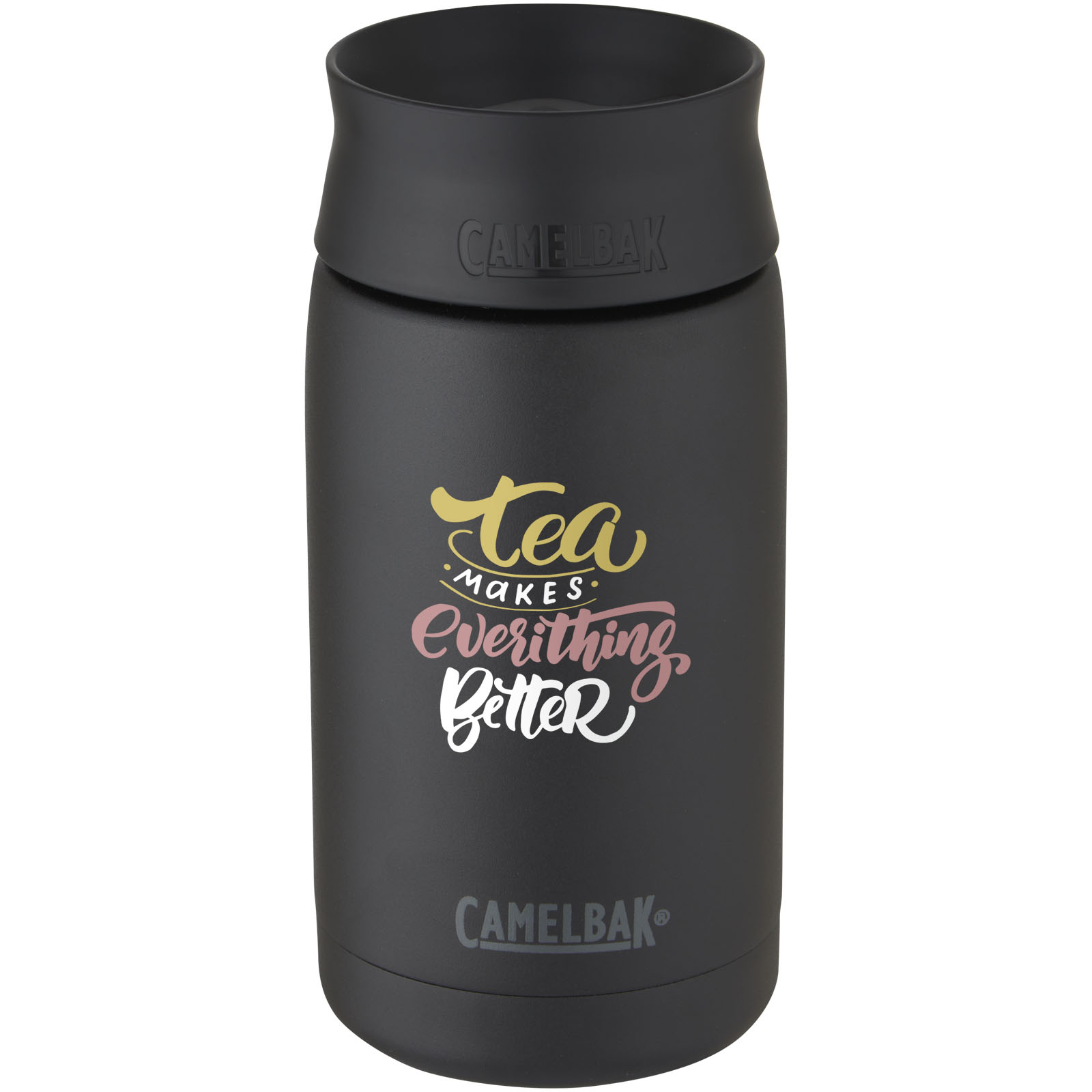 Double-wall stainless steel vacuum construction with copper insulation, which allows beverages to stay cold for 24 hours or hot for at least 8 hours. The construction also prevents condensation on the outside of the bottle. Screw-on lid with twist-open leak proof cap allowing for 360º drinking. Wide mouth opening for easy cleaning and filling. On-trend, durable powder coating. Volume capacity is 350ml. Lifetime guarantee for manufacturing defects with Got Your Bak™.