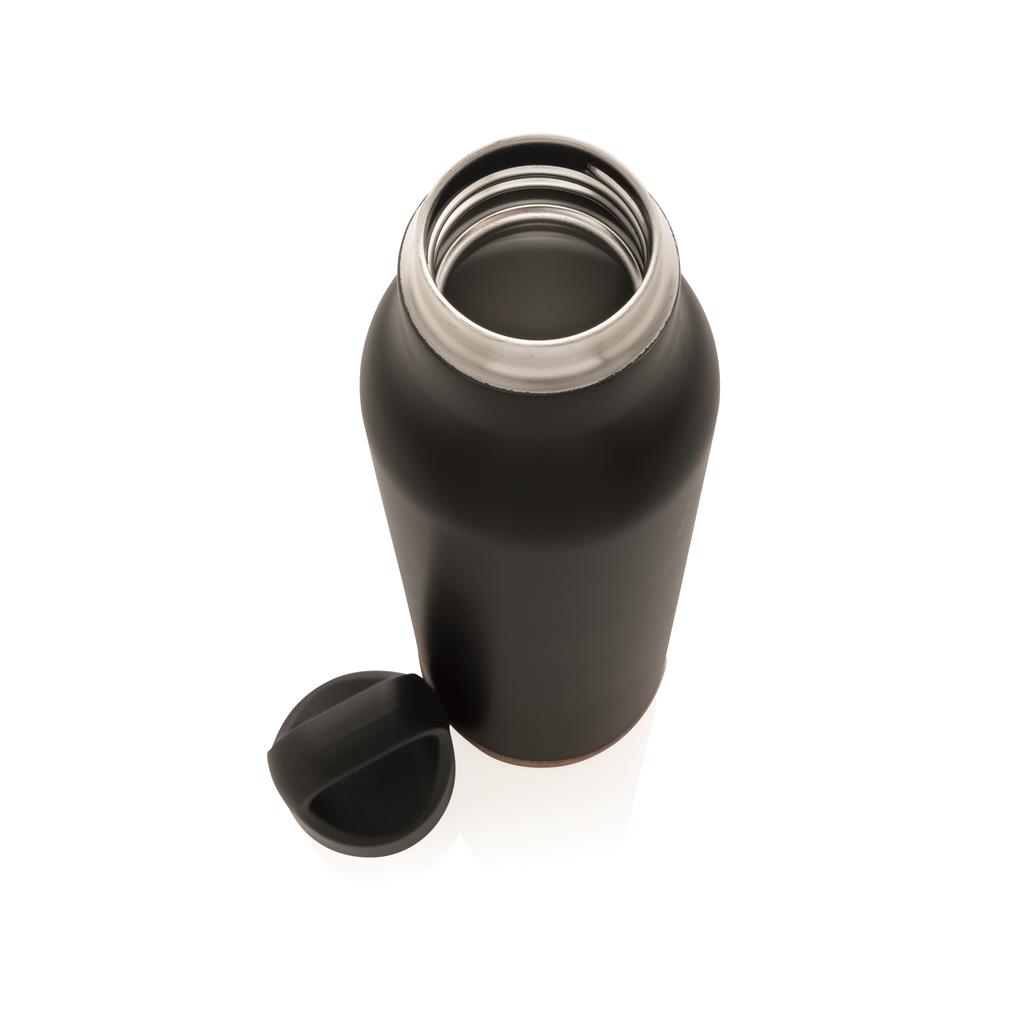 Vacuum insulated leak proof flask with durable 304 SS inside and 201 outside. Unique cork detail on the bottom. Keeps your drinks hot for up to 5h and cold up to 15h. Content: 600ml.