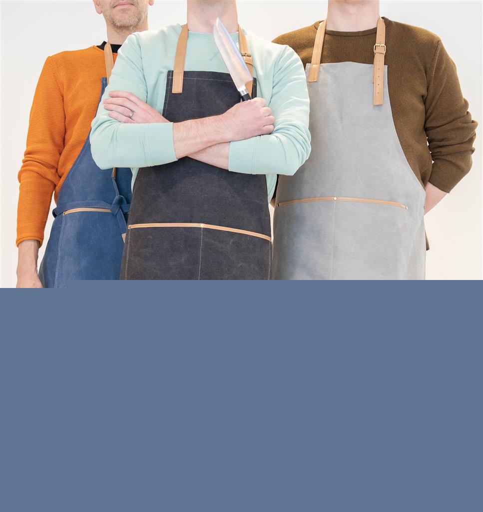 Be a top chef in this beautiful apron made in a heavy quality 16oz. canvas with PU accent details. With a one-size design, it has adjustable straps at the neck and on the sides. A large pocket comes in handy for storing notes and utensils. Comes in kraft gift box. Machine wash at 30 degrees celsius with similar colors.