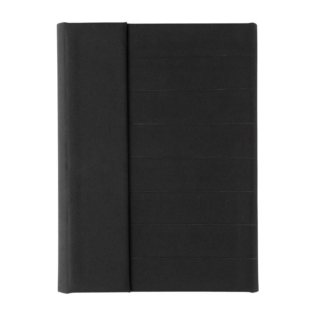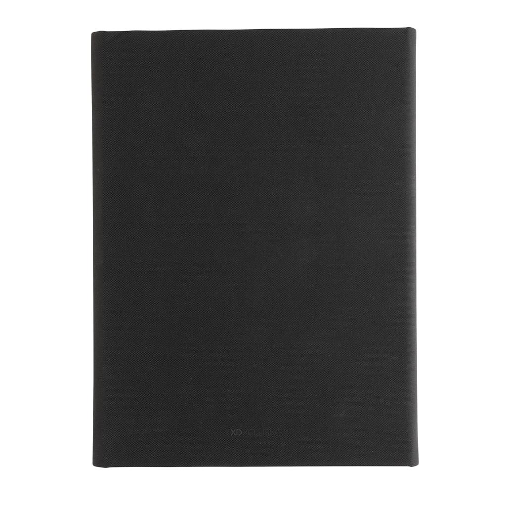 Keep all your work essentials organised in this beautiful A5 Aware™ RPET portfolio. Inside the portfolio you can find a matching notebook. The notebook contains 64 sheets/128 sheets cream coloured lined 80gm/s paper. Inside you will find 1 big sleeve pocket, 2 card slots and a pen loop. Magnetic closure. With AWARE™ tracer that validates the genuine use of recycled materials. Each portfolio saves 3.9 litres of water and has reused 6.5 0.5L PET bottles. 2% of proceeds of each Impact product sold will be donated to Water.org. PVC free.
