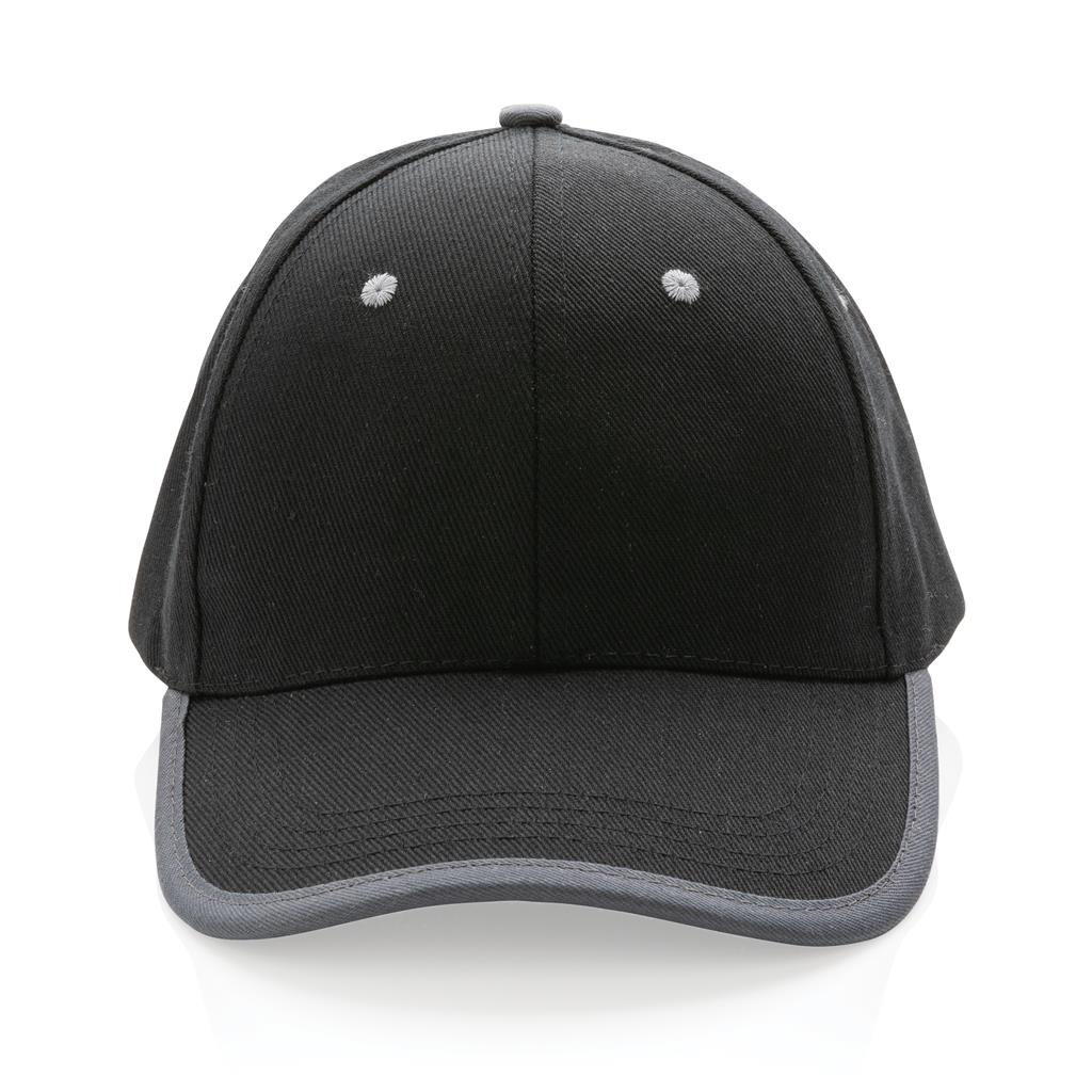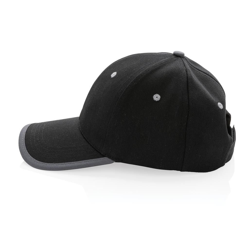Tell a true story about sustainability and wear it with pride! This 6 panel contrast cap with curved visor is made with brushed recycled 280gr cotton that is embedded with AWARE™ tracer technology. With AWARE™, the use of genuine recycled fabric materials and water reduction impact claims are guaranteed. Save water and use genuine recycled fabrics. If you choose this item you save 250 liters of water. With the focus on water, 2% of proceeds of each sold Impact product will be donated to Water.org. The contrast cap has a dark grey binding and velcro closure. Water savings are based on figures when compared to conventional fiber. This calculated indication is based on reliable LCA data as published by Textile Exchange in their Material Snapshots 2016.