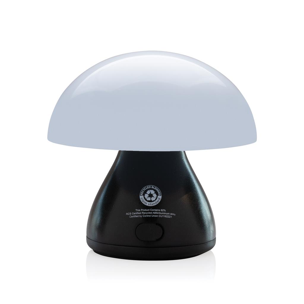 Trendy re-chargeable and portable table lamp that will look good both on your desk or in your living room. Made with RCS certified recycled ABS and RCS certified recycled aluminum. Total recycled content: 42% based on total item weight. RCS certification ensures a completely certified supply chain of the recycled materials. The table lamp will operate up 18 hours on one single charge and can be re-charged in 2 hours. With two modes ( warm light and white light) that can be adjusted by touching the top of the lamp. Rechargeable via USB-C. Packed in FSC® mix packaging. IPX 4 waterproof.