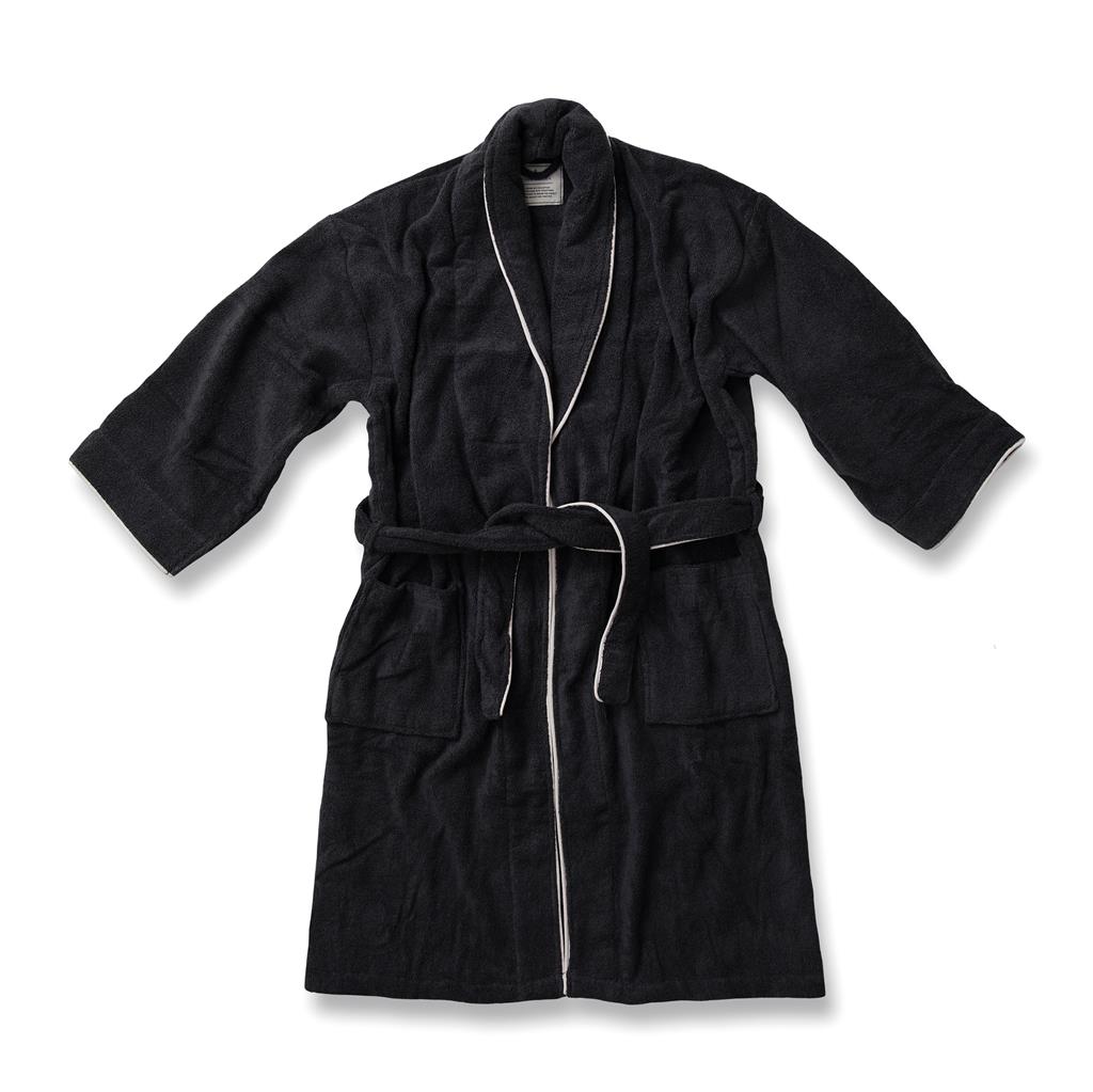 Luxurious robe in 100% cotton. The robe is a classic model with an extra wide collar and belt at the waist. It also has several nice details, such as enclosed seams and contrasting piping on the collar. Made of a long cotton fibre with untwisted threads. The result is an incredibly soft robe that you’ll never want to take off. OEKO-TEX® STANDARD 100. 09.HIN.68091. Hohenstein HTTI.
