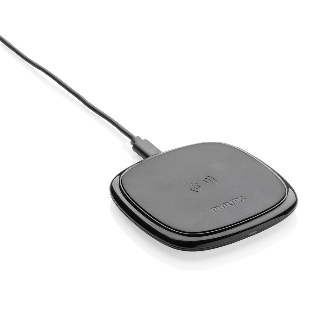 Wireless charger to charge all wireless devices. With silicon ring that prevents your phone from sliding around. The LED indicator will light up when the device is charging. Compatible with all QI enabled devices like Android latest generation, iPhone 8 and up. Input: 5V/1.5A. Wireless Output: 5V/1A, 5W.
